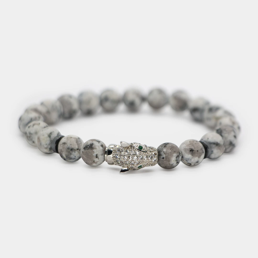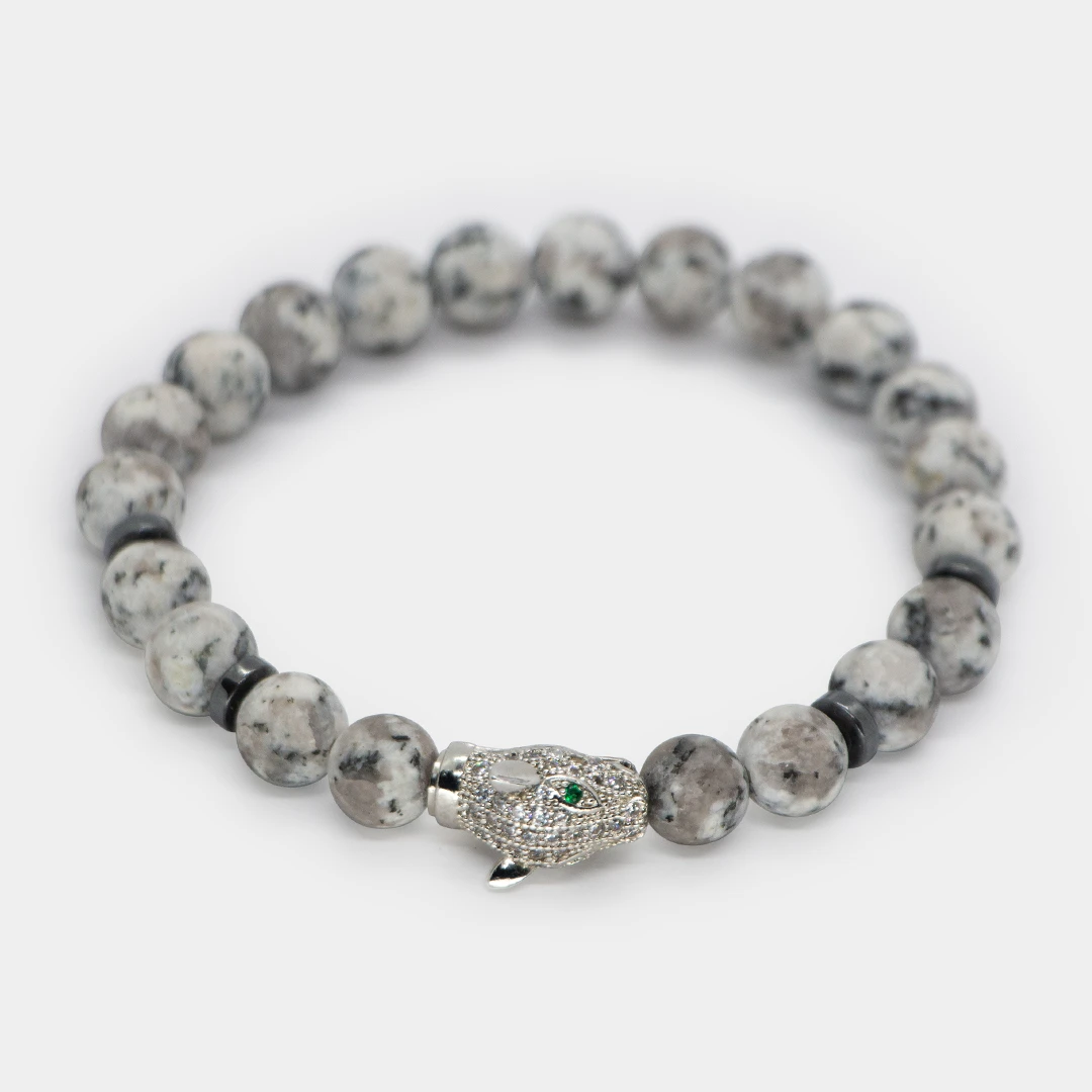 Parlaq zirkon daşlı gümüşü pişik klonu ilə birlikdə hazırlanmış Matt Hovlit Daşı Qolbaq ilə sakitlik və zəhni aydınlıq biləyinizdə. Bu zərif bilərzik təkcə minimalist bir aksesuar deyil, həm də stress azaldıcı və mənəvi tarazlıq mənbəyidir. Daha çox +