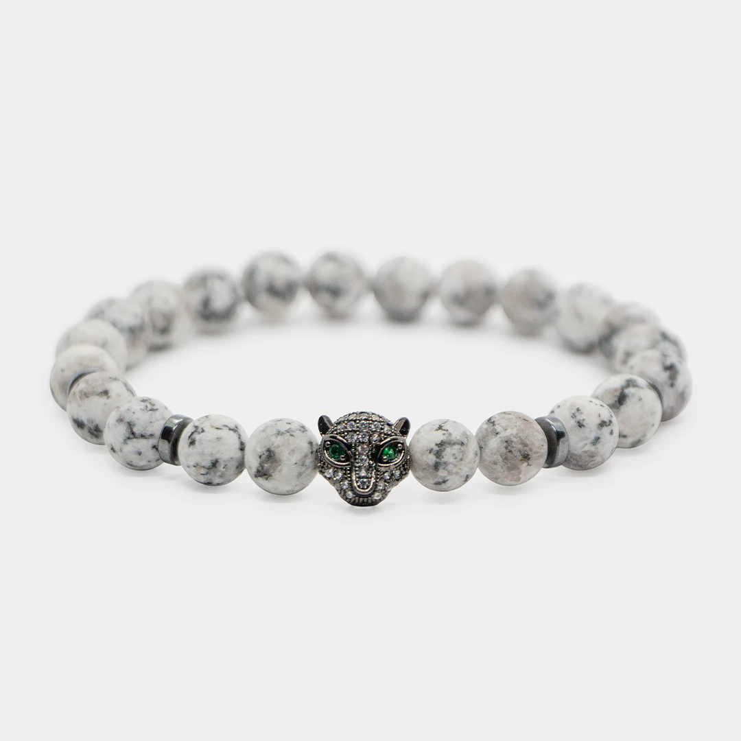 Gündəlik həyatın səs-küyündən yorulmusunuz? Mat Hovlit daşı ilə hazırlanmış bu qolabq sizə təbii sakitlik və daxili aydınlıq gətirir. Hovlit daşı əsrlər boyu zehni sakitləşdirmək, mənfi düşüncələri dağıtmaq və emosional tarazlıq yaratmaq üçün istifadə olunub. Mat ağ rəngi və teksturalı səthi ilə bu bilərzik həm minimalist bir stil, həm də enerji təmizliyi təqdim edir.